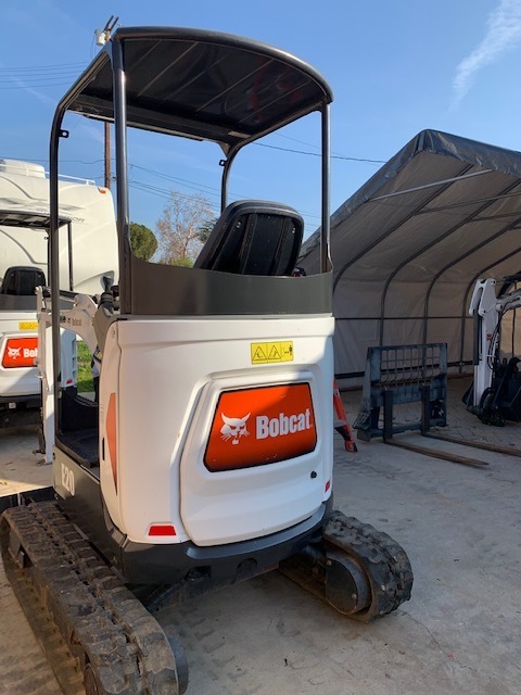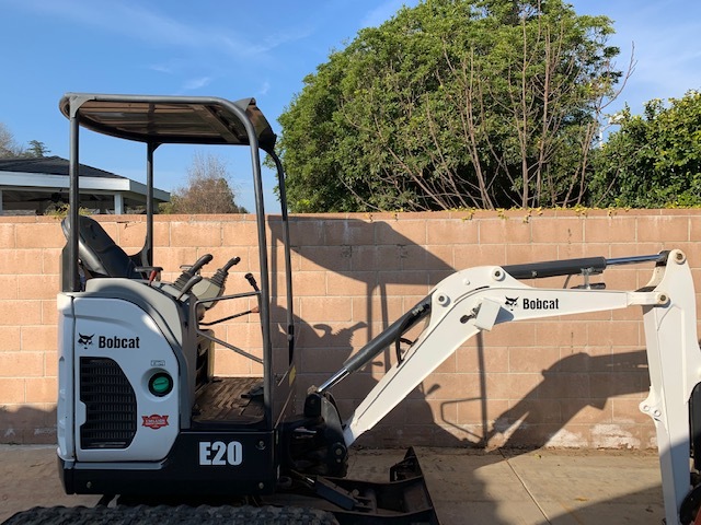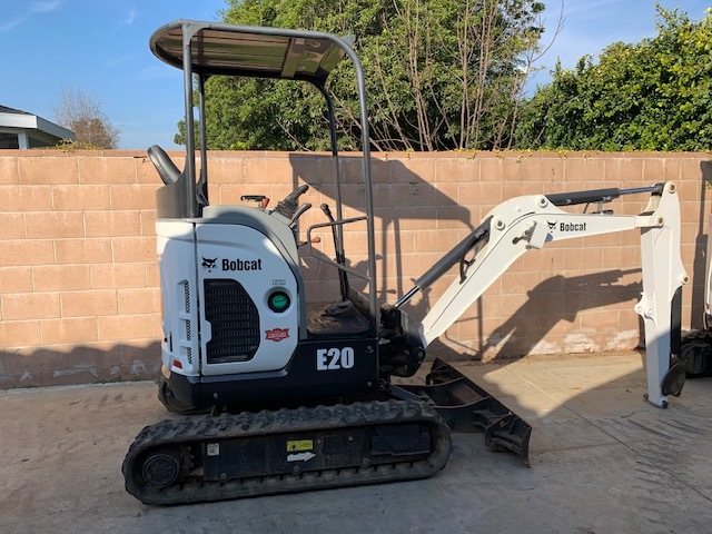 BOBCAT E20 TELESCOPING TRACK EXCAVATOR, OROPS, ZERO TAIL SWING, 2 SPEED Final Tier 4 Compliant. The Bobcat E20 Compact Excavator (Mini Excavator) delivers impressive performance in tight areas with minimal repositioning. Hydraulically retract the undercarriage to only 39 inches to travel through gates or between homes, then expand to 54 inches for a wider footprint and greater performance. Equipped with a Tier 4 engine, the E20 has zero tail swing for versatility and maneuverability on the most compact of job sites.