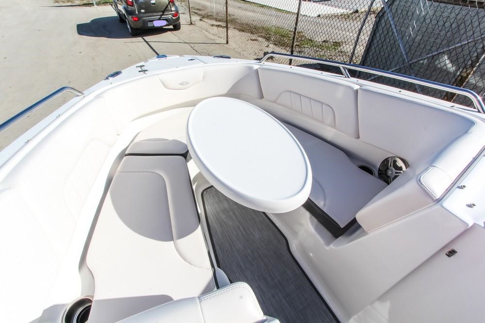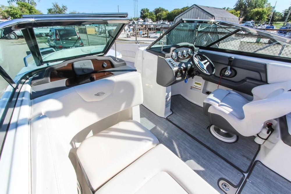 The 227 SSX packs more elegance, performance, and innovation than family boaters have ever experienced at this popular length. There’s no mistaking that the style lines, attention to detail, and efficient use of space are SSX at their very best. Compared to other luxury bowriders in this size range, the 227 has a clear cut edge when it comes to seating capacity, legroom, storage space, and performance. Upgraded options on this boat include the swim platform logo mat, dual battery with switch, tandem axle trailer with aluminum wheels, fire extinguishing system, snap-in flooring, folding arch tower with bimini top, cockpit and bow covers, galvanized anchor.