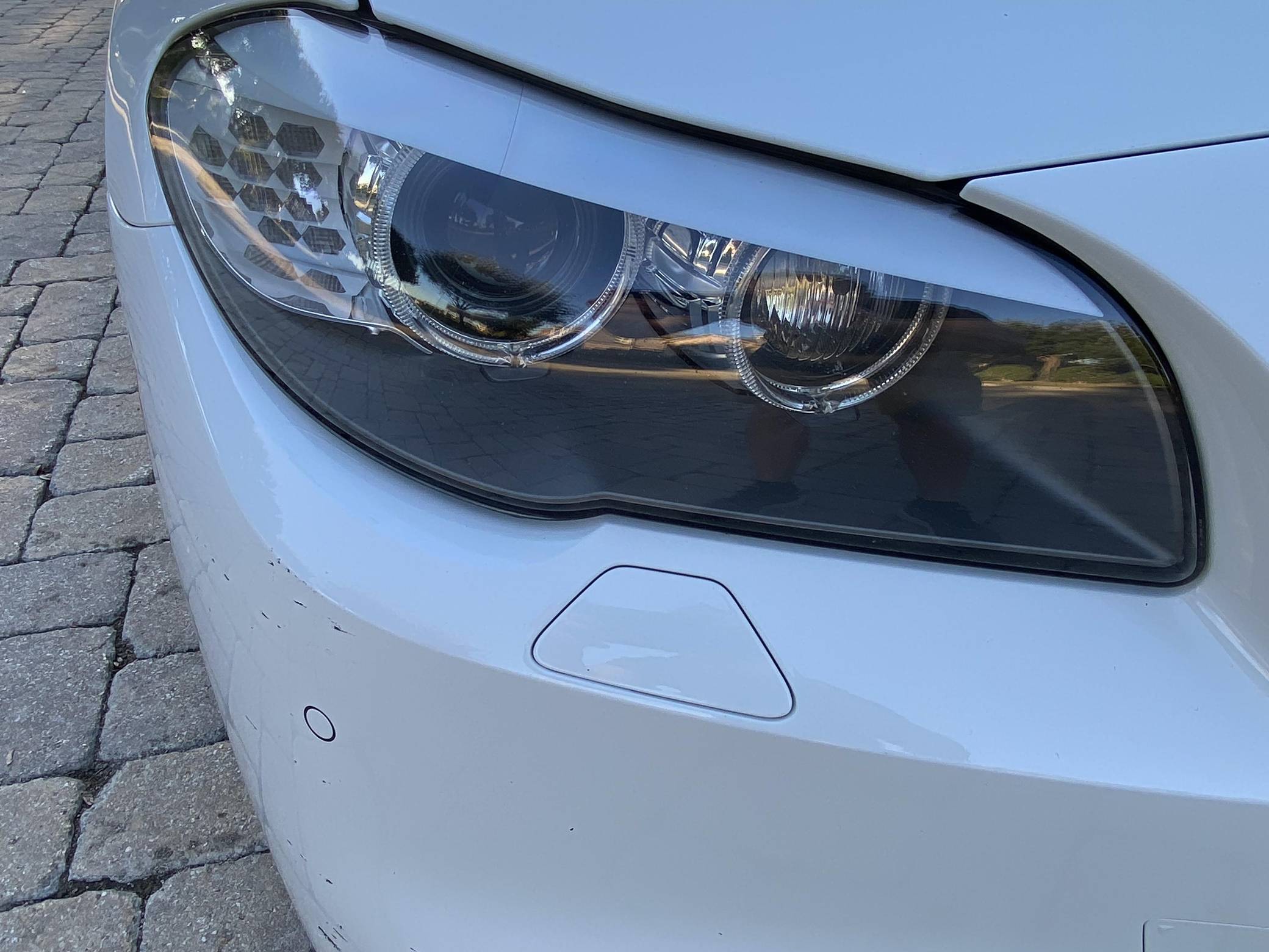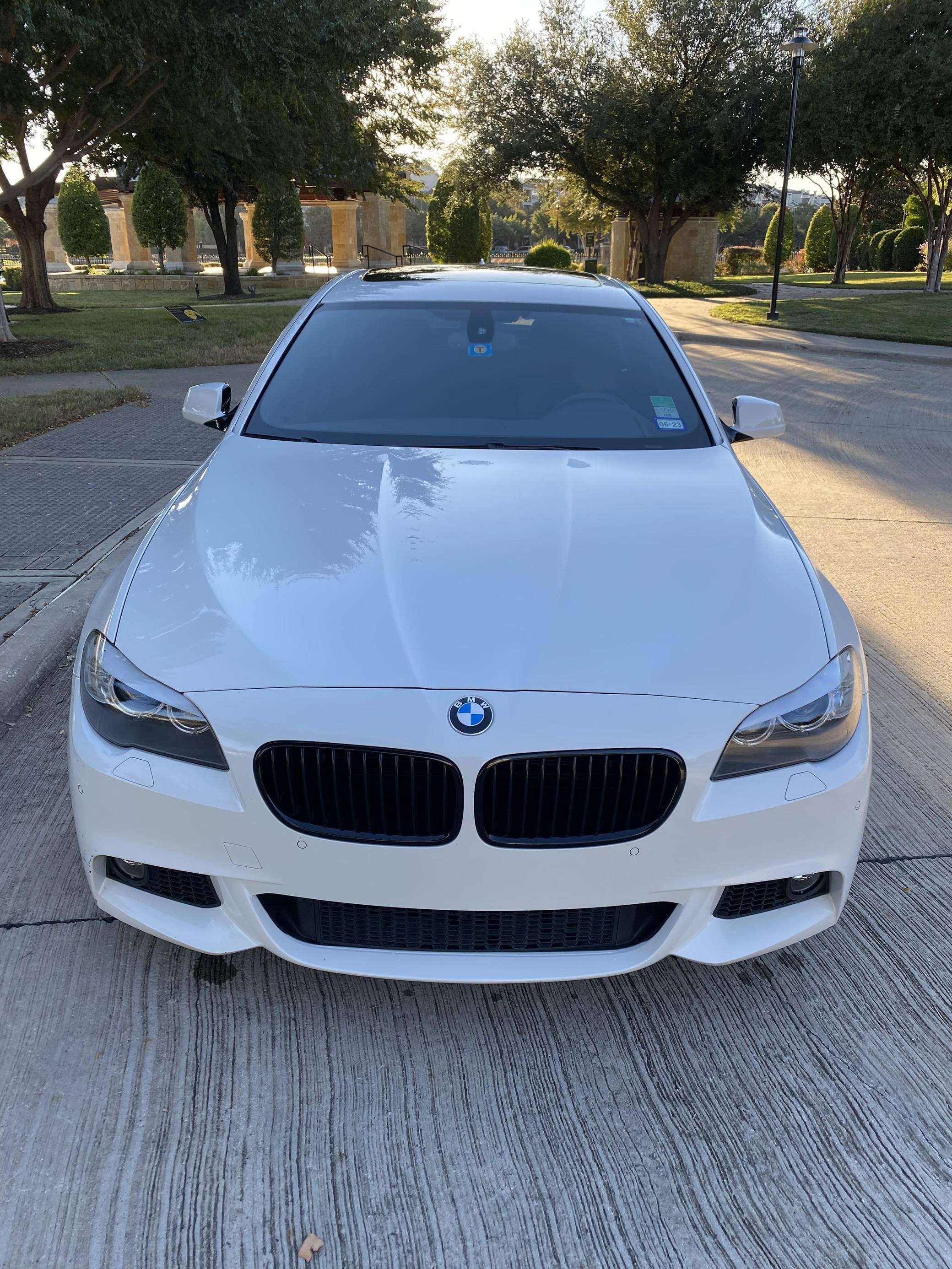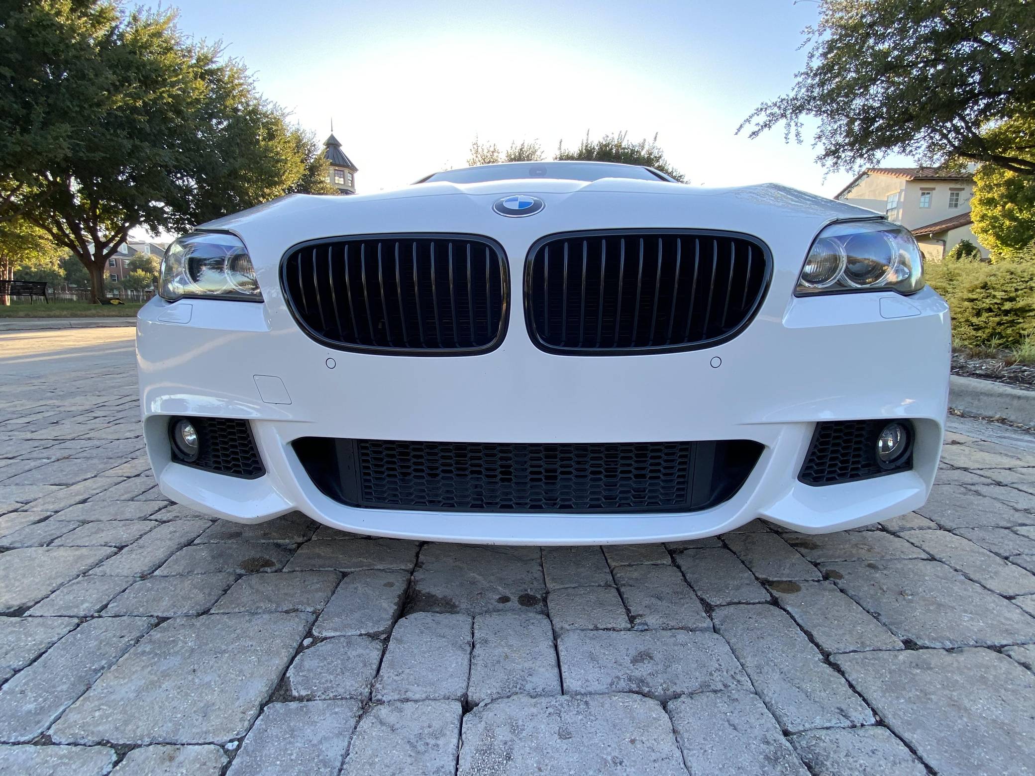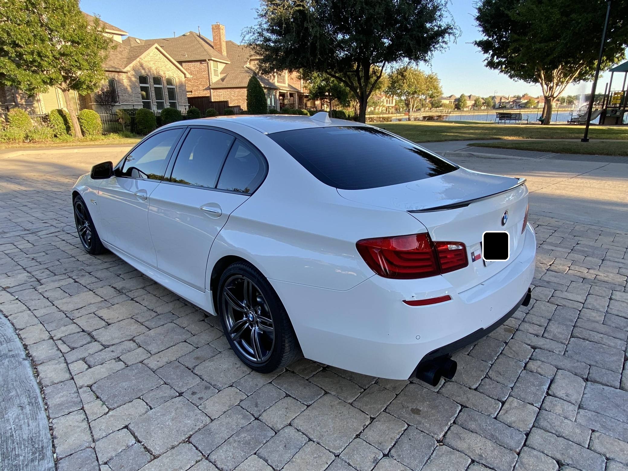 THIS… is a 2012 BMW 550i, finished in Alpine White with a black interior. Factory equipment includes M Sport, Premium Sound, and Convenience packages, adaptive xenon headlights, a sunroof, Dakota leather upholstery, heated front seats, Anthracite wood trim, ceramic controls, rear sunshades, and a navigation system, among others listed below. Modifications reported by the seller include 19-inch factory wheels finished in black chrome, Dinan Stage 3 engine software, a Dinan free flow exhaust, black kidney grilles, ceramic window tint, a rear badge delete, and a carbon fiber rear spoiler. BMW released the F10-generation 5 Series for the 2011 model year. It wore a less extroverted design than its predecessor, and engineers overhauled nearly every part of the chassis to ensure it remained the driver's choice in the segment in the face of growing competition. Available at launch, the 550i landed at the top of the non-M-tuned range. Power for this 550i comes from a twin-turbocharged 4. 4-liter V8 engine, rated at 400 horsepower and 450 lb-ft of torque when left stock. According to the dealership Classic BMW, this 550i is now rated at 511 horsepower and 580 lb-ft of torque. Output is sent to the rear wheels via an 8-speed automatic transmission.
