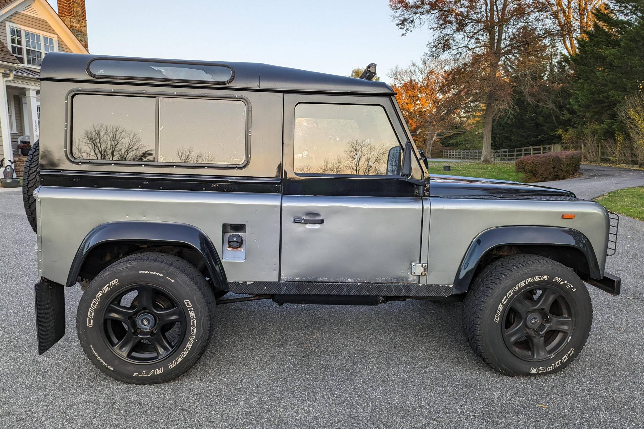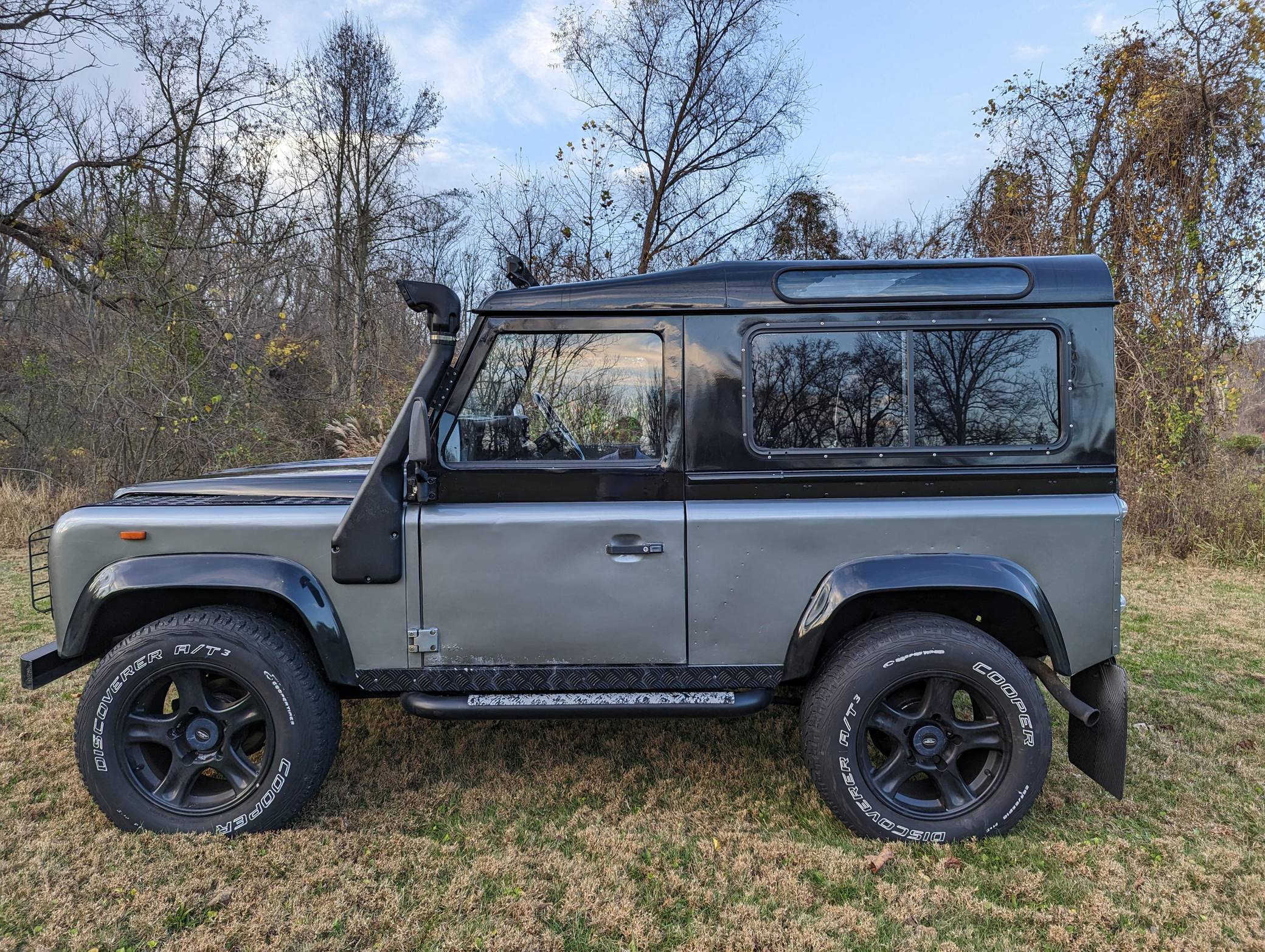 THIS. . . is a 1992 Land Rover Defender 90, finished in black and gray with a black interior. Modifications reported by the seller include 18-inch wheels, black and gray exterior paint, diamond plating on some of the exterior surfaces, aftermarket exterior lighting, running boards, rear bench seats, a Sony head unit, and aftermarket speakers. Land Rover introduced the four-door 110 and the two-door 90 in 1983 and 1984, respectively, to replace the long-running Series III. While both models looked a lot like their predecessors, they offered users a more up-to-date interior, a permanent four-wheel-drive system, and a coil spring suspension system. The 110 and the 90 morphed into the original Defender in 1990, and production carried on with minor updates until 2016. Power comes from a 2. 5-liter "200 Tdi" turbodiesel 4-cylinder engine, rated at 107 horsepower and 188 lb-ft of torque. It spins the four wheels via a 5-speed manual transmission and a 2-speed transfer case.