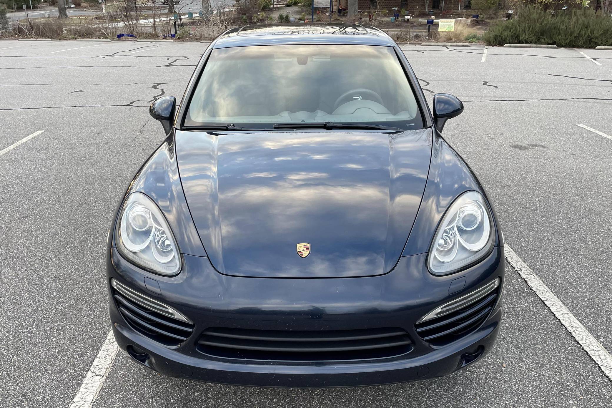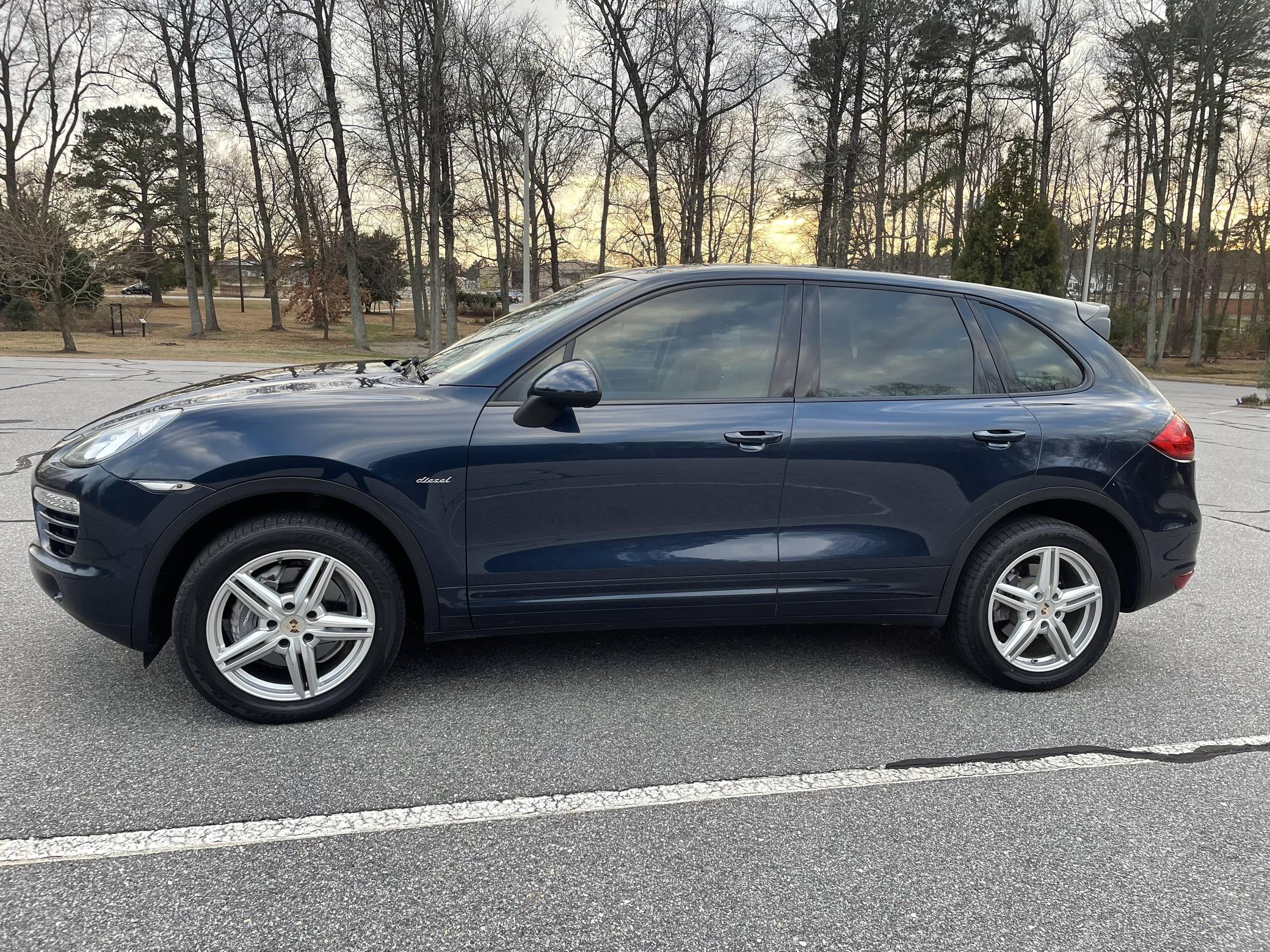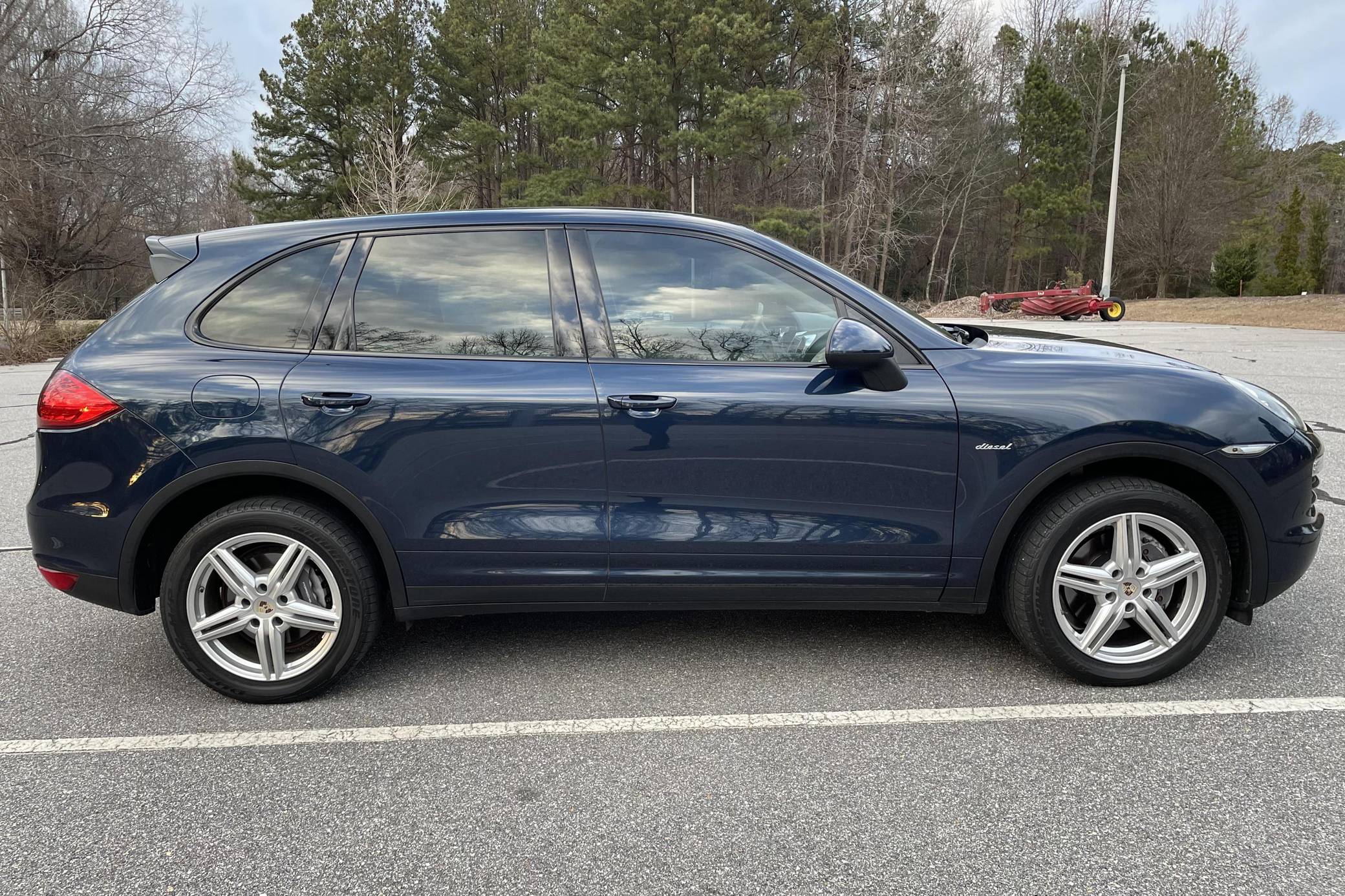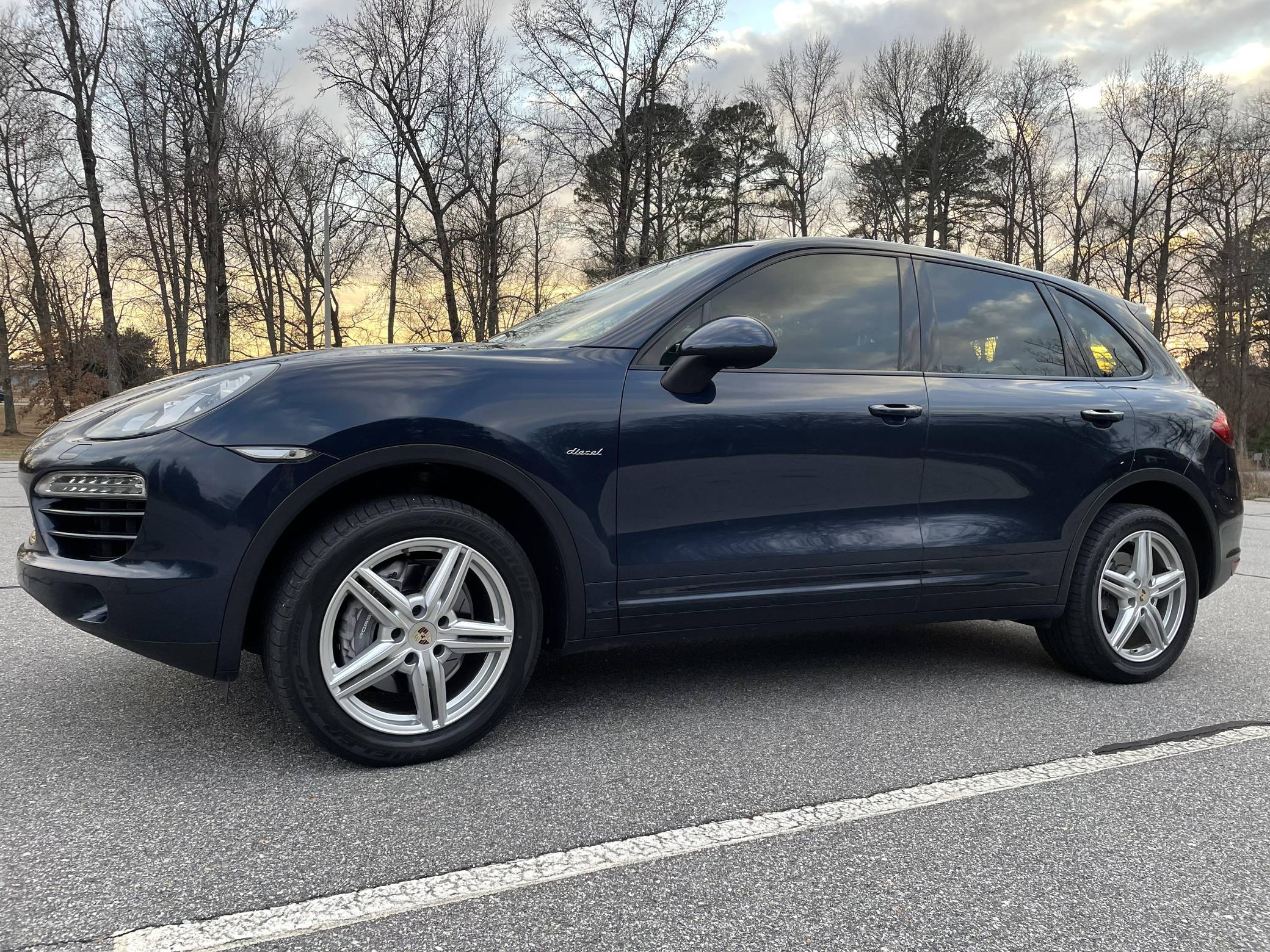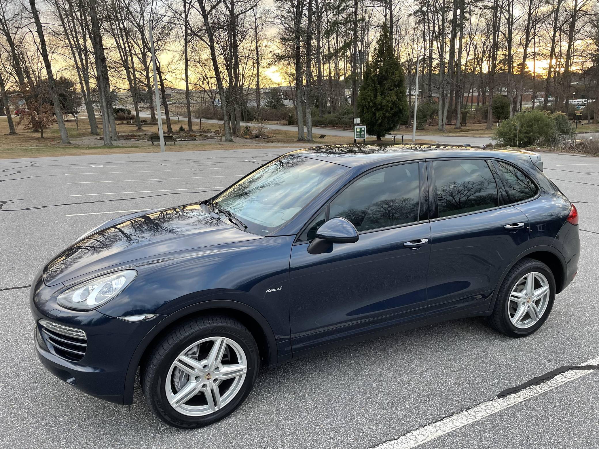 THIS… is a 2013 Porsche Cayenne Diesel, finished in Dark Blue Metallic with a Platinum Grey interior. According to the build sheet provided in the gallery, factory equipment includes the Convenience and Bose Audio packages, 19-inch Cayenne Design II wheels, a trailer hitch receiver, power-adjustable, ventilated, and heated front seats, Front and rear ParkAssist with rear-view camera, and Lane Change Assist (LCA). The only modification reported by the seller is paint protection film applied to forward-facing surfaces. Released for the 2011 model year, the second-generation Cayenne (called "958" internally) was slightly bigger and significantly lighter than its predecessor. It offered a smoother ride thanks to additional technology and luxury features, it was just as capable off-road, and critics agreed it was noticeably sportier than the first-generation model. Production ended in 2017. Power comes from a 3. 0-liter turbodiesel V6, rated at 240 horsepower and 406 lb-ft of torque. Output is sent to all four wheels via an 8-speed automatic transmission and a permanent all-wheel drive system.