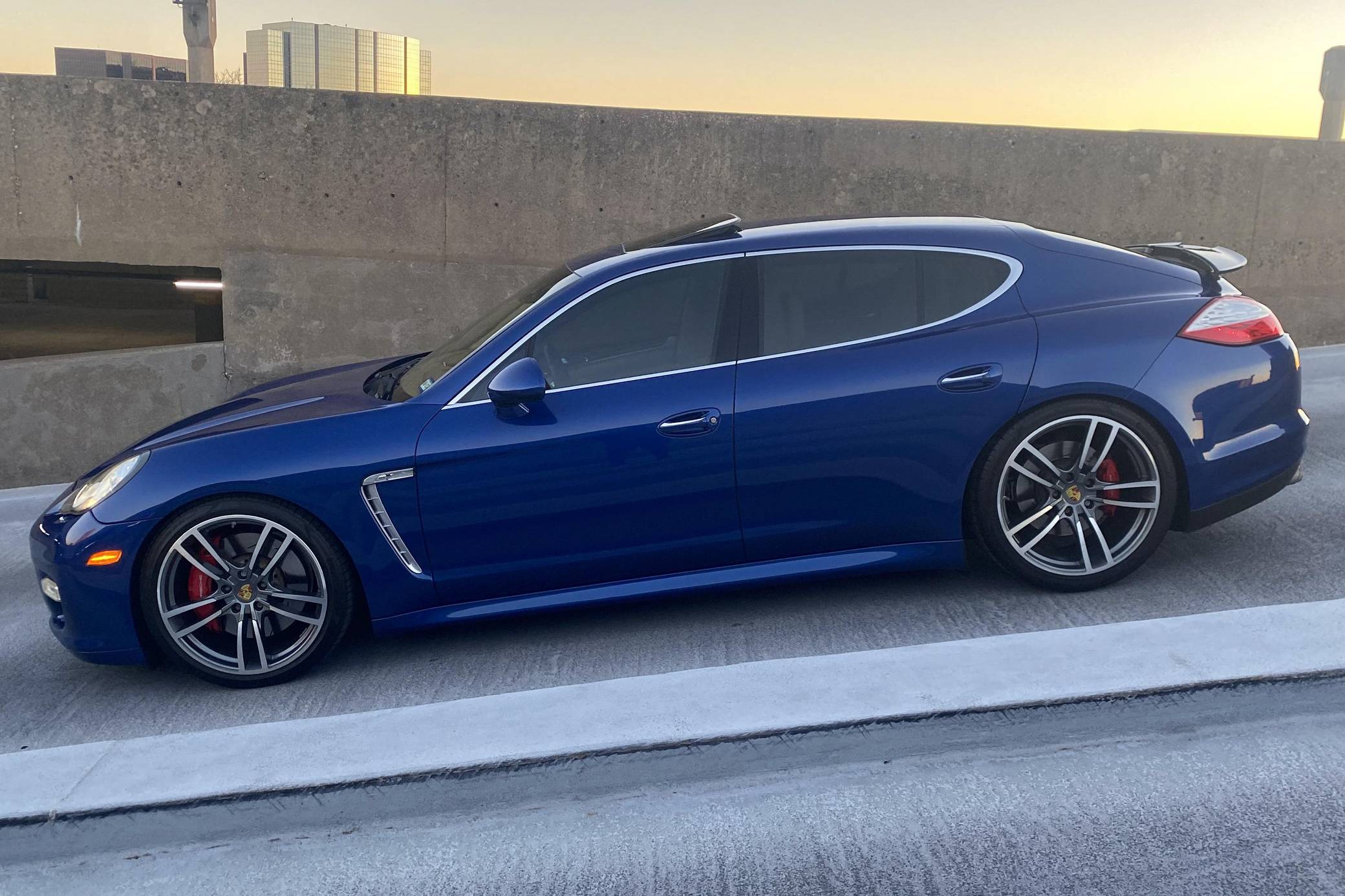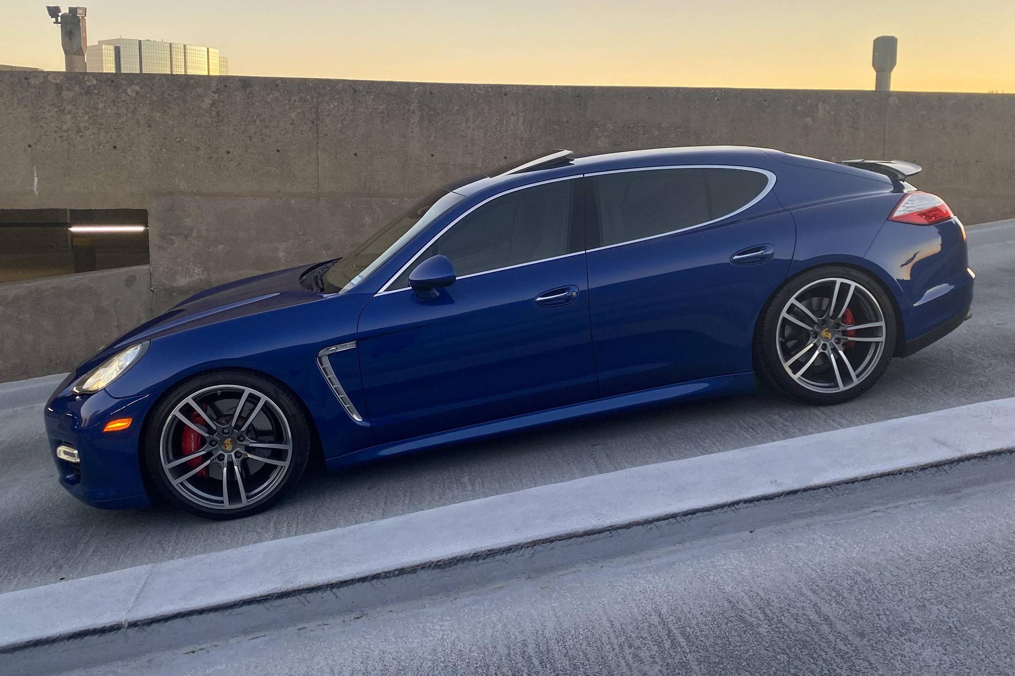 THIS. . . is a 2011 Porsche Panamera Turbo, finished in Aqua Blue Metallic with a Cognac and Cedar interior. This Porsche's odometer displays approximately 24,000 miles. It came equipped with Sport Package and Sport Chrono Package Plus, adaptive air suspension with PDCC, sport exhaust system, bi-xenon headlights, rear wiper, two-tone leather upholstery, adaptive front sport seats, heated front and rear seats, rear seat entertainment, and a Bose surround sound system, among others listed below. The sole modification reported by the seller is 21-inch 911 Turbo-style wheels. After several false starts, Porsche entered the sedan segment for the first time when it launched the original Panamera for 2010. While its design and its very existence were controversial, the Panamera ultimately drew praise as the sportiest model in its segment and it achieved this distinction without sacrificing comfort or luxury. The Turbo model slotted near the top of the line-up when it arrived for 2010. Power comes from a 4. 8-liter twin-turbocharged V8, rated at 500 horsepower and 516 lb-ft of torque. It spins the rear wheels via a 7-speed automatic transmission.