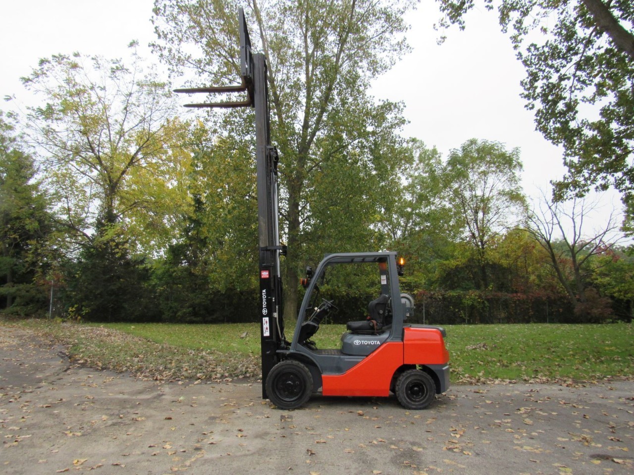 2013 Toyota 8FGU30, 84/188 three-stage mast, s/s, 6000 capacity, pneumatic tires, LPG, great appearance, mechanically inspected, and ready to work.