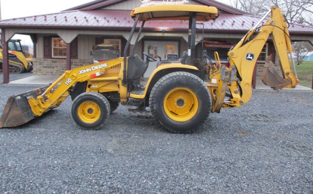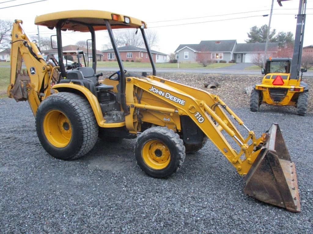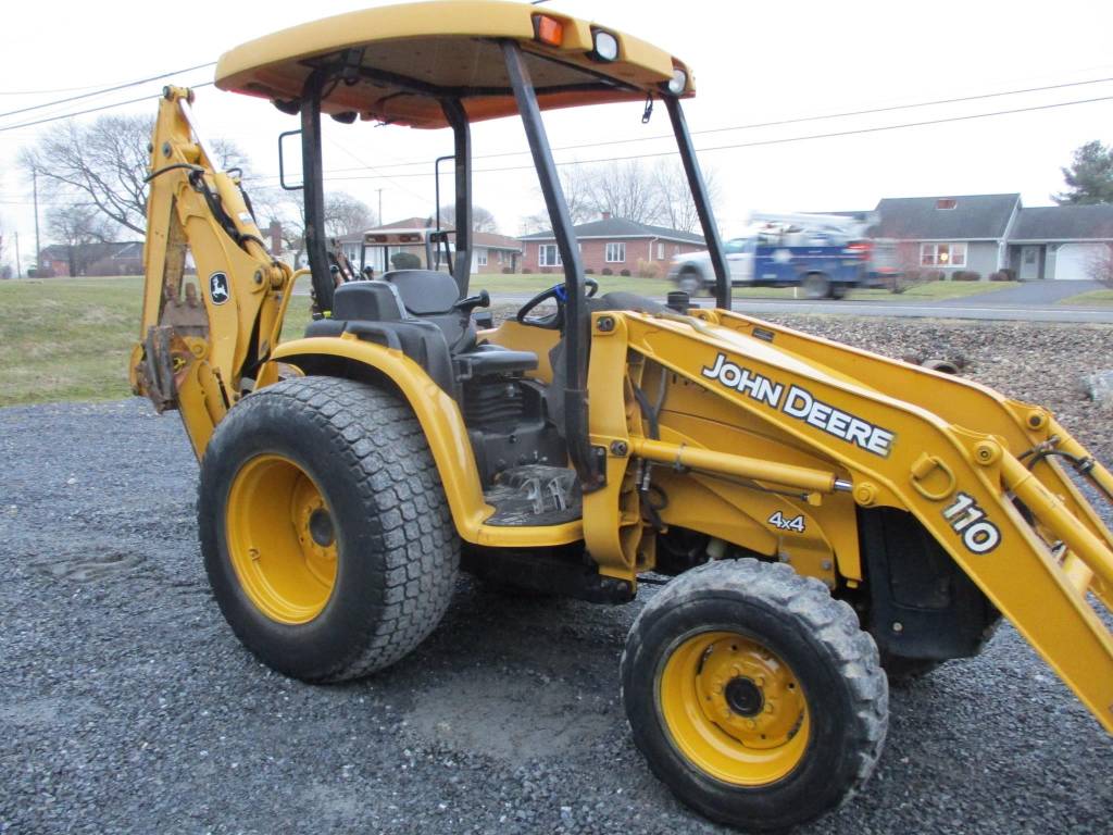 2009 DEERE, 110 Loader Backhoes, 2009 John Deere 110 tractor, loader, backhoe, 4x4, 12" hoe bucket/ quick-tach, 3rd valve, hydrostatic transmission, 3-point hitch, (no arms), 540 PTO, RUNS WELL!