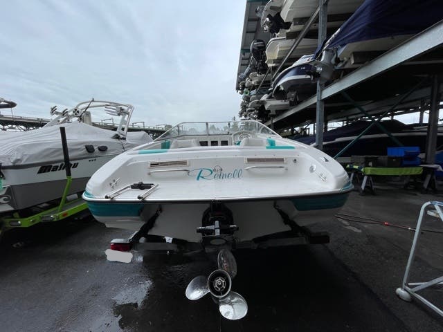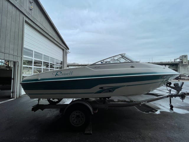 1998 Reinell 197 Cuddy! Classic Teal with Grey Interior. Powered by a Mercruiser 5.7L/V8/Alpha One Outdrive with a Stainless Steel Prop! Options include Convertible Top, Cockpit Tonneau Cover, Tilt Steering Wheel, Stereo, Fire Extinguisher, Swim Ladder, Back to Back Sleeper Seats, and More! Packaged on a Galvanized Calkins Bunk Trailer!