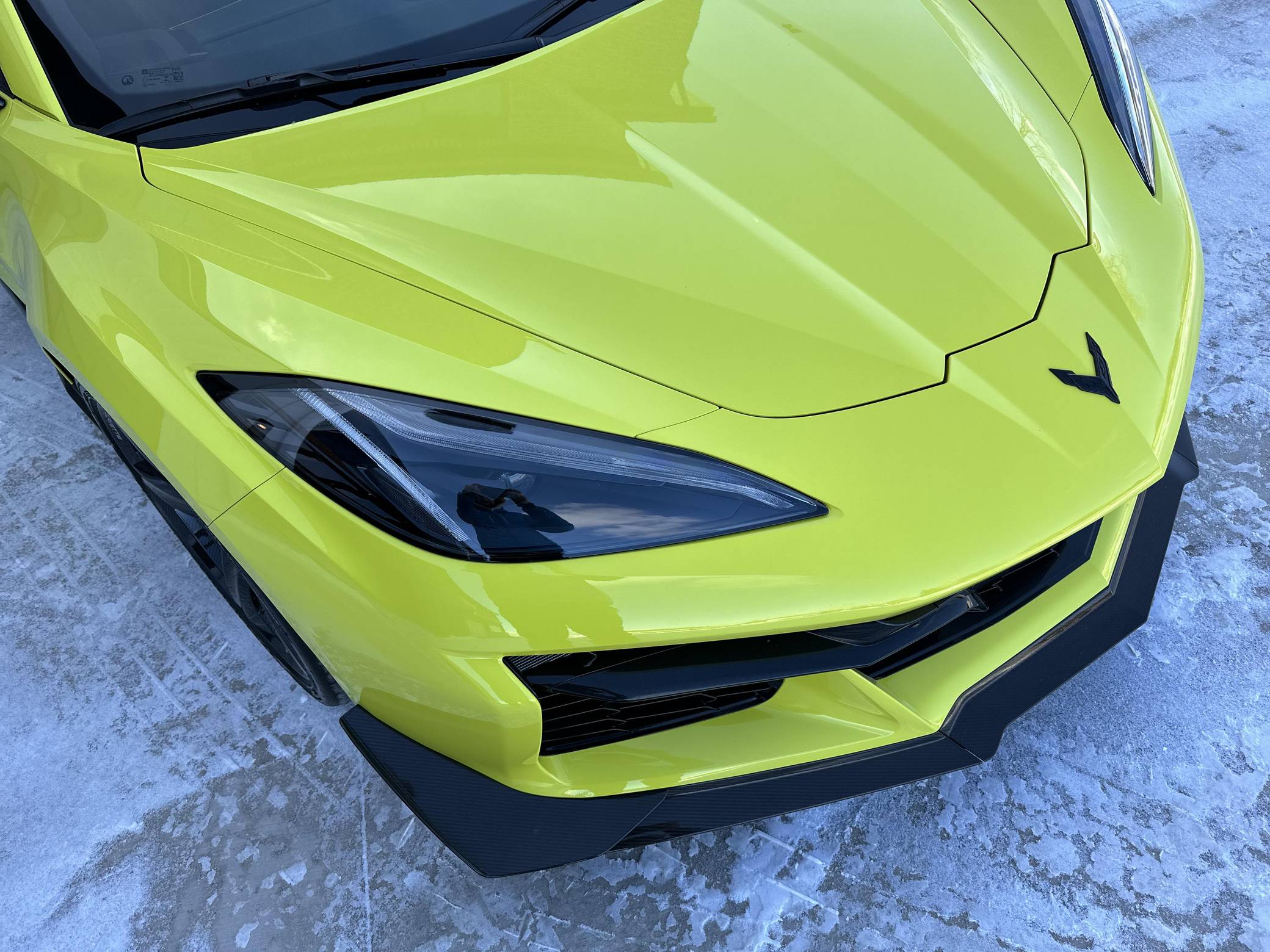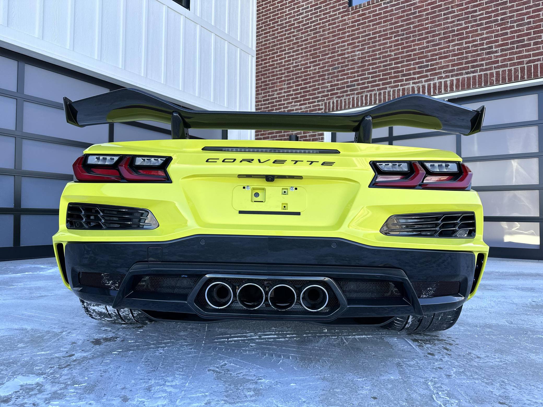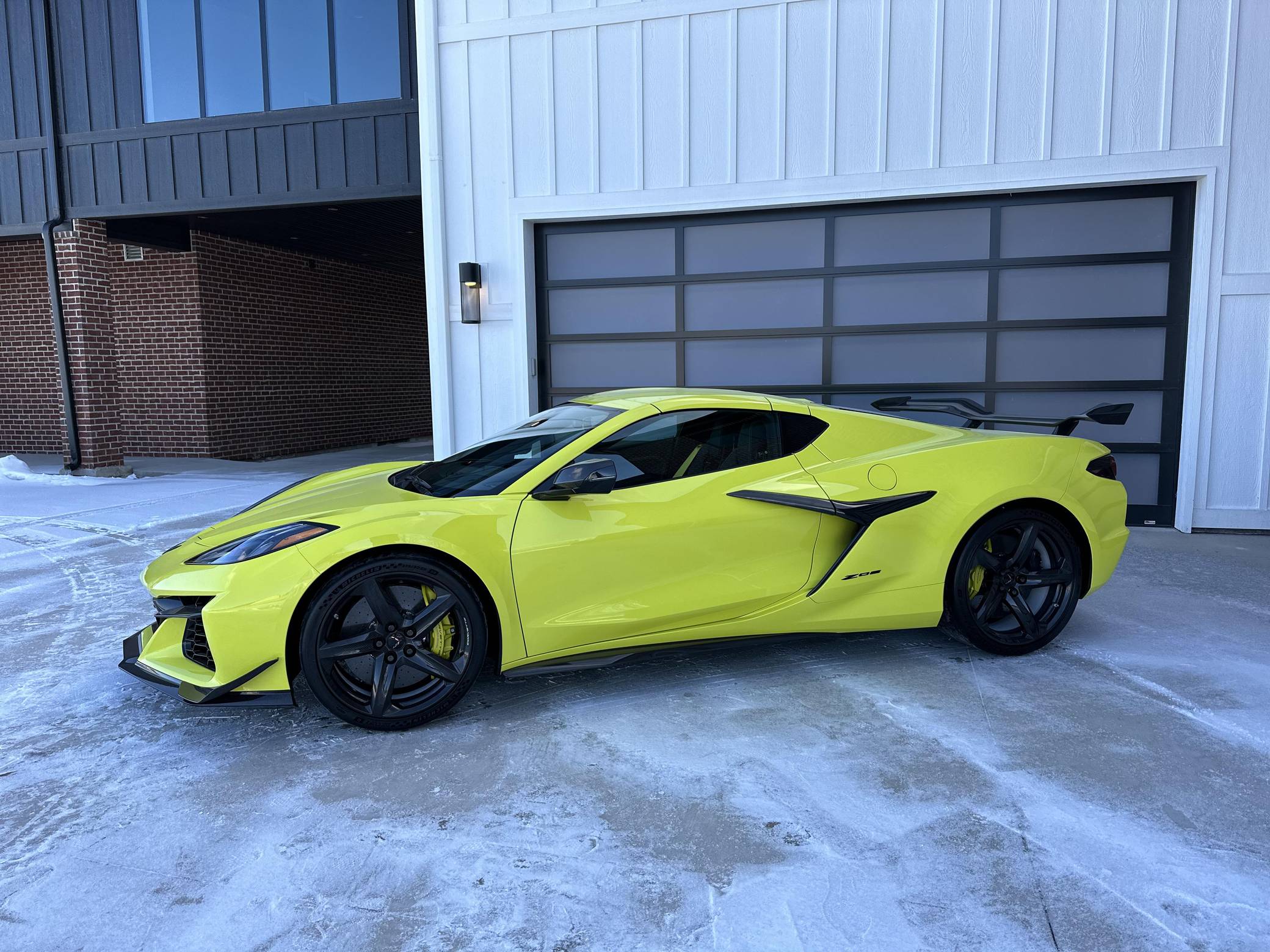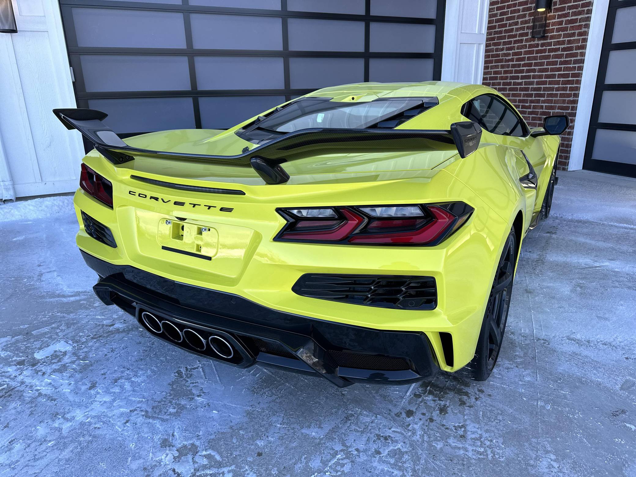 THIS… is a 2023 Chevrolet Corvette Z06, finished in Accelerate Yellow with a Jet Black interior. No modifications have been reported by the seller. The switch to a mid-engine layout was liberating for the C8 Corvette engineers as they finally had a proper base to build a Z06 infused with world-class performance and handling. The C8 Corvette Z06 arrived for 2023, boasting a howling flat-plane-crank 5. 5-liter V8, a wider body, and a razor-sharp driving character. Released for 2020, the eighth-generation Corvette switched to a mid-mounted engine, a configuration that represented the most drastic change in the nameplate's decades-long history. Placing the V8 behind the passenger compartment allowed designers to completely reinvent the Corvette's proportions, while engineers took advantage of the rear-biased weight distribution to dial in sharper handling. Power comes from a naturally-aspirated "LT6" 5. 5-liter V8 rated at 670 horsepower and 460 lb-ft of torque. Output is sent to the rear wheels via an 8-speed dual-clutch automatic transmission.