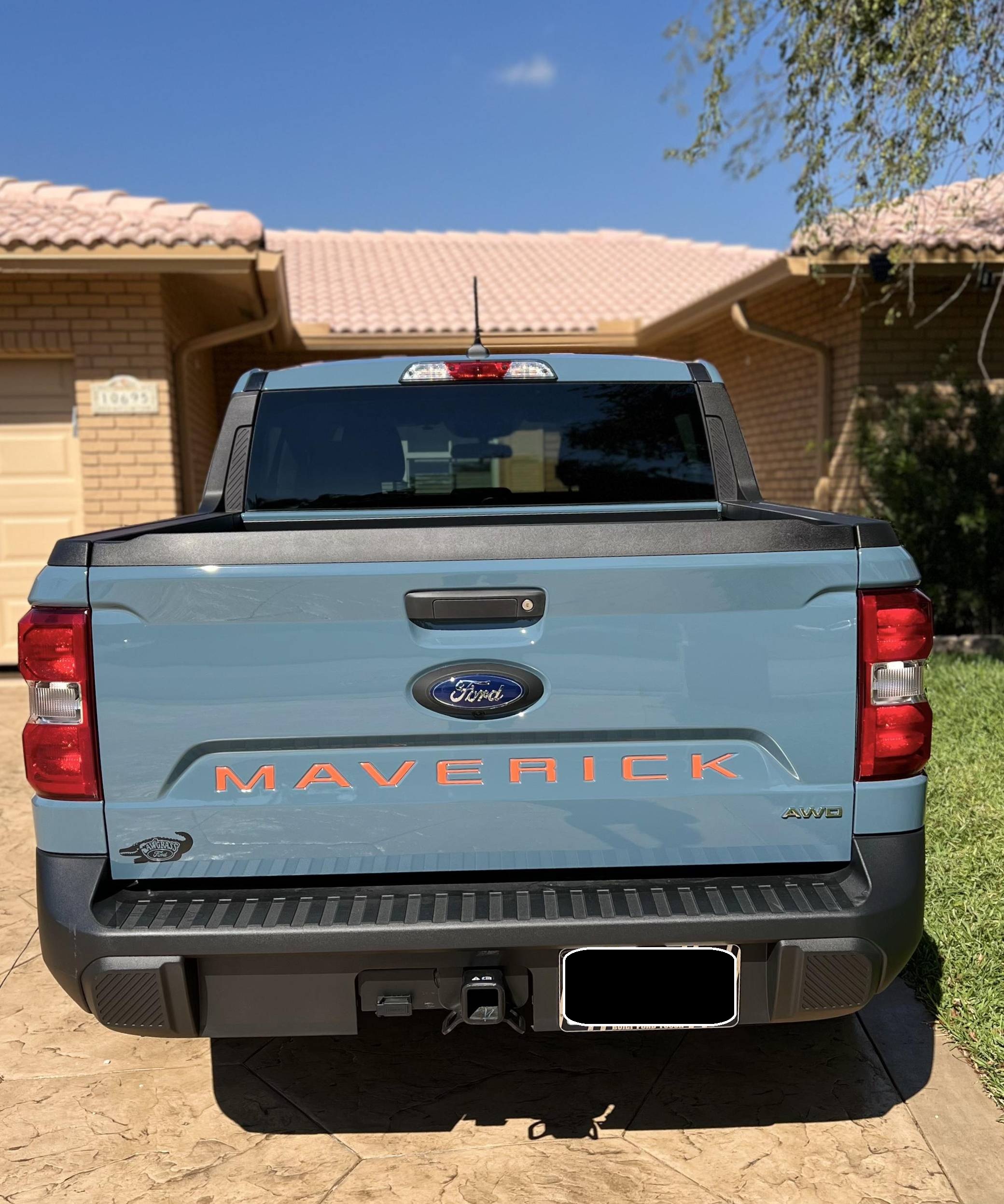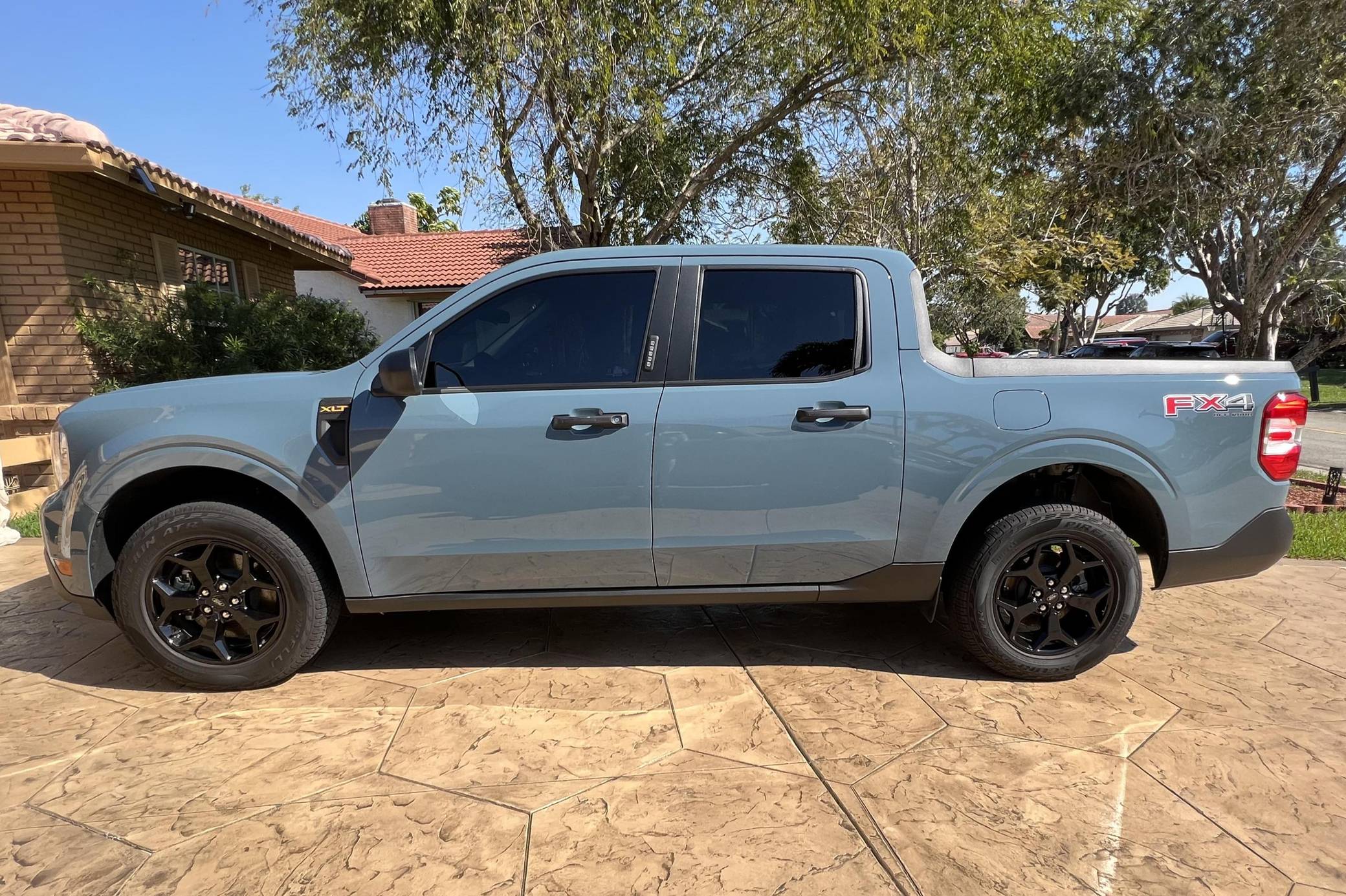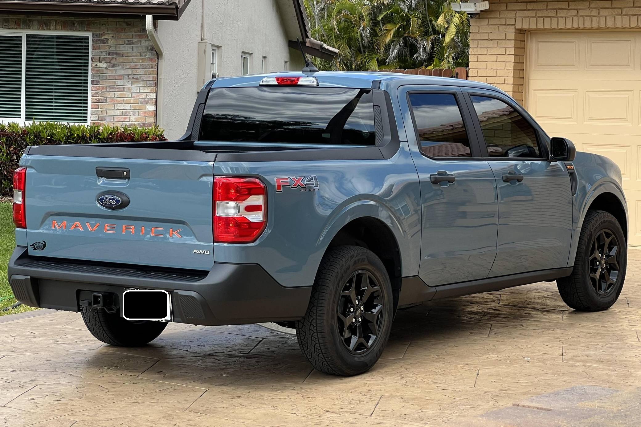THIS. . . is a 2022 Ford Maverick XLT AWD, finished in Area 51 with a Navy Pier and Medium Slate interior. Modifications reported by the seller include LED turn signals, tinted windows, and a drop-in bedliner. The Maverick is Ford's newest compact pickup, which shares a platform with the Escape and Bronco Sport crossovers. The Maverick is offered in three trim levels called XL, XLT, and Lariat, respectively, and is available with front- or all-wheel-drive. It made its debut for 2022 and remains available today. Power comes from a 2. 0-liter turbocharged "Ecoboost" 4-cylinder engine, rated at 250 horsepower and 277 lb-ft of torque. Power is sent to all four wheels via an 8-speed automatic transmission.