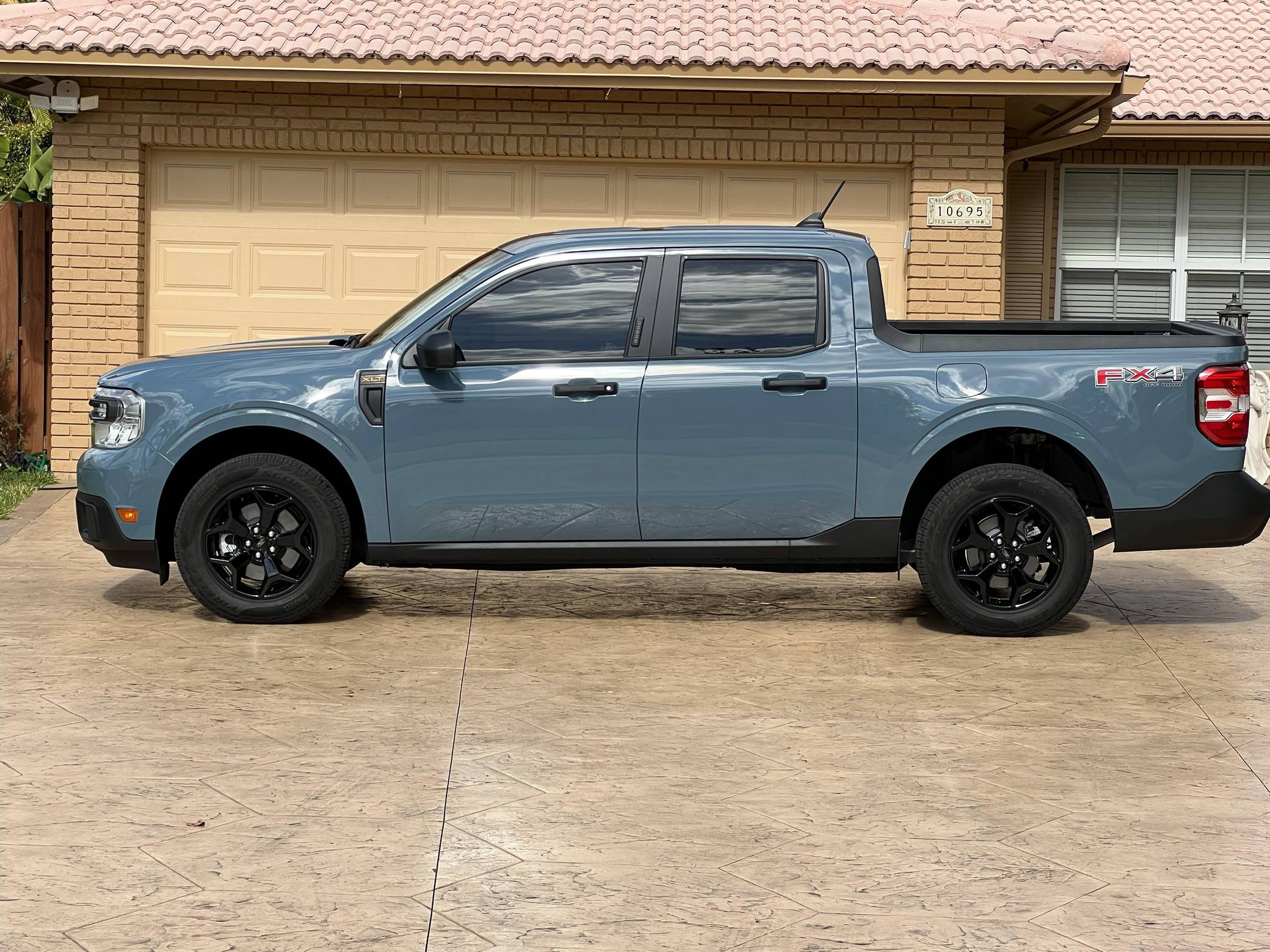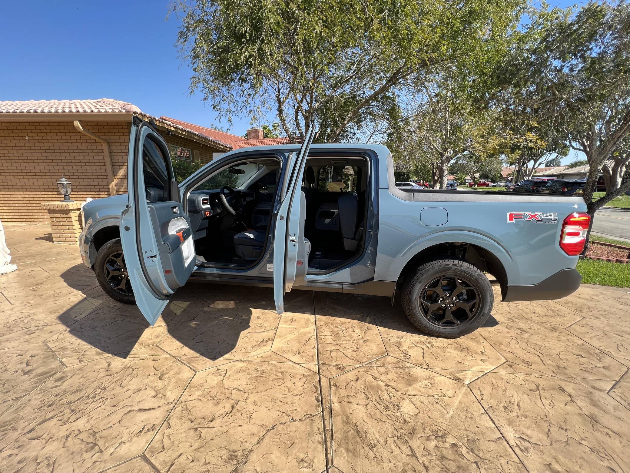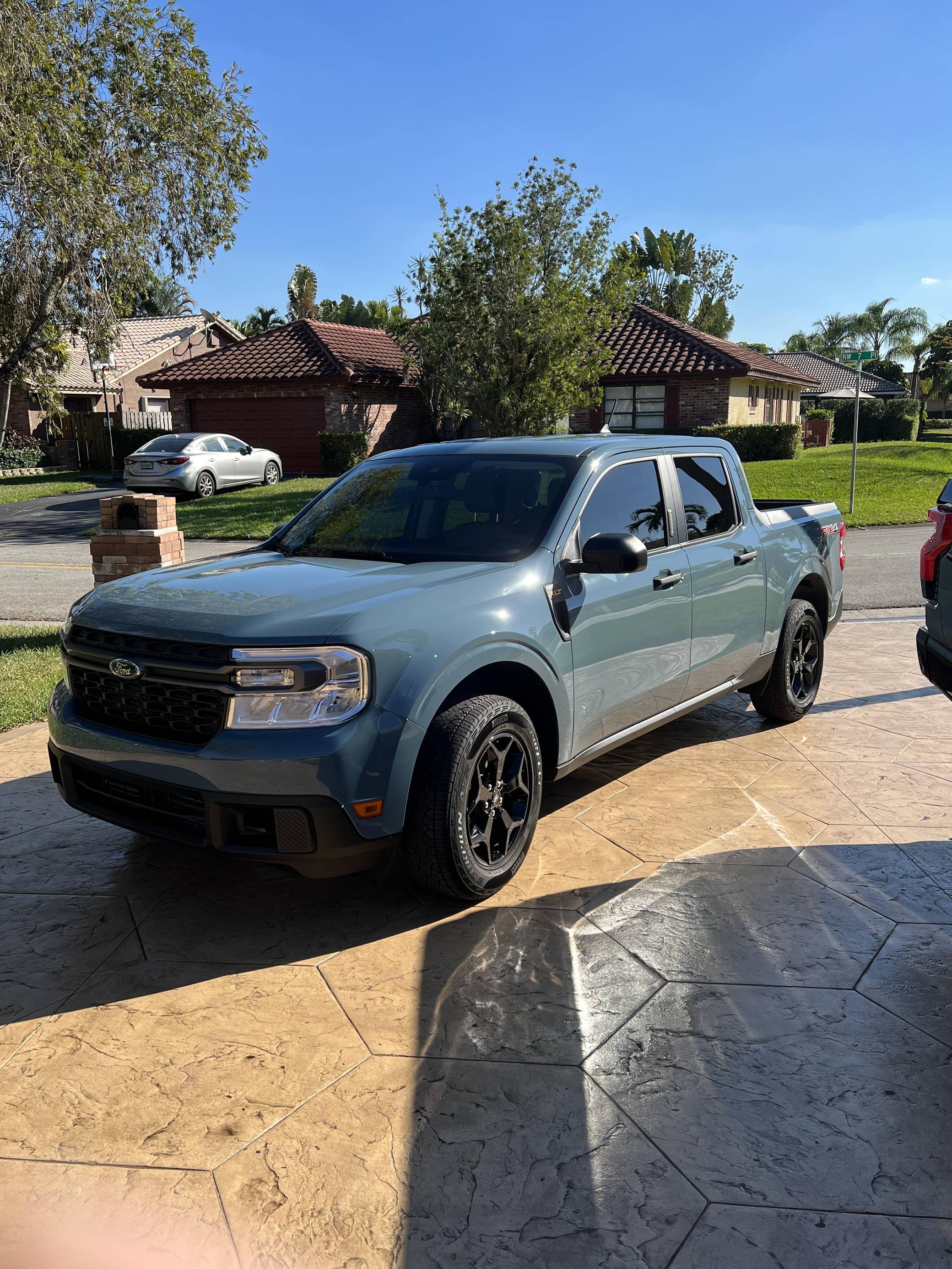 THIS. . . is a 2022 Ford Maverick XLT AWD, finished in Area 51 with a Navy Pier and Medium Slate interior. Modifications reported by the seller include LED turn signals, tinted windows, and a drop-in bedliner. The Maverick is Ford's newest compact pickup, which shares a platform with the Escape and Bronco Sport crossovers. The Maverick is offered in three trim levels called XL, XLT, and Lariat, respectively, and is available with front- or all-wheel-drive. It made its debut for 2022 and remains available today. Power comes from a 2. 0-liter turbocharged "Ecoboost" 4-cylinder engine, rated at 250 horsepower and 277 lb-ft of torque. Power is sent to all four wheels via an 8-speed automatic transmission.