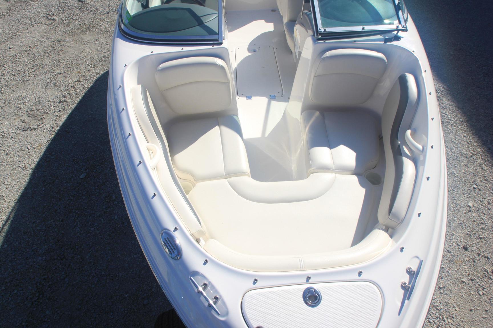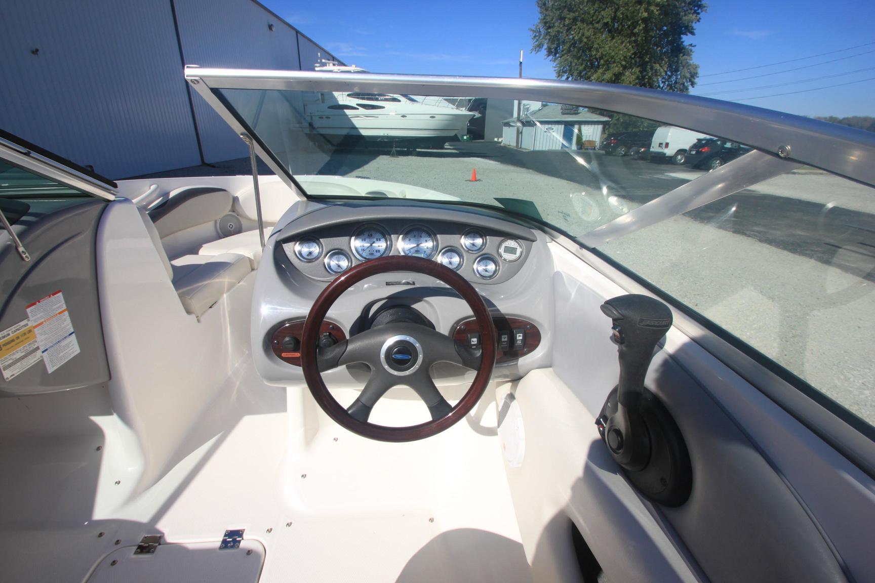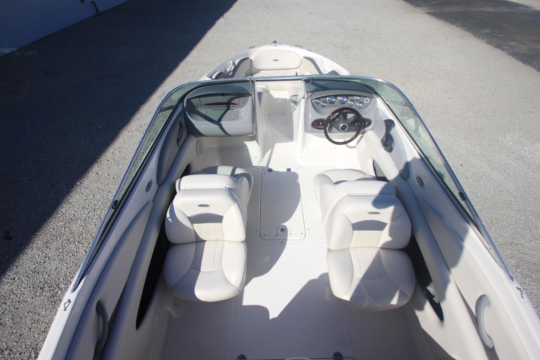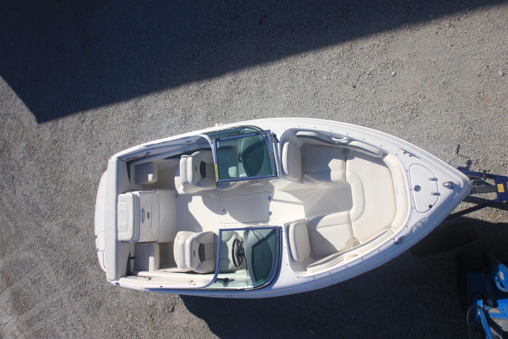 Stainless Steel Prop! An impressive family runabout that feels bigger than its centerline indicates, the 190 is a Chaparral bow to stern. Priced right and built to last, standard and sport seating options open up the possibilities. Inside, three-tone expanded vinyl, a wood grain dash, hinged bow cushions, and a built-in anchor locker with a protective cradle are a notch above most in this size bracket. Below the fiberglass cockpit inner liner, we use closed-cell injected foam for flotation and a quieter ride, Perma Panel marine coring, and durable stainless steel hardware. Custom Trailer made for Chaparral boats with a spare tire.
