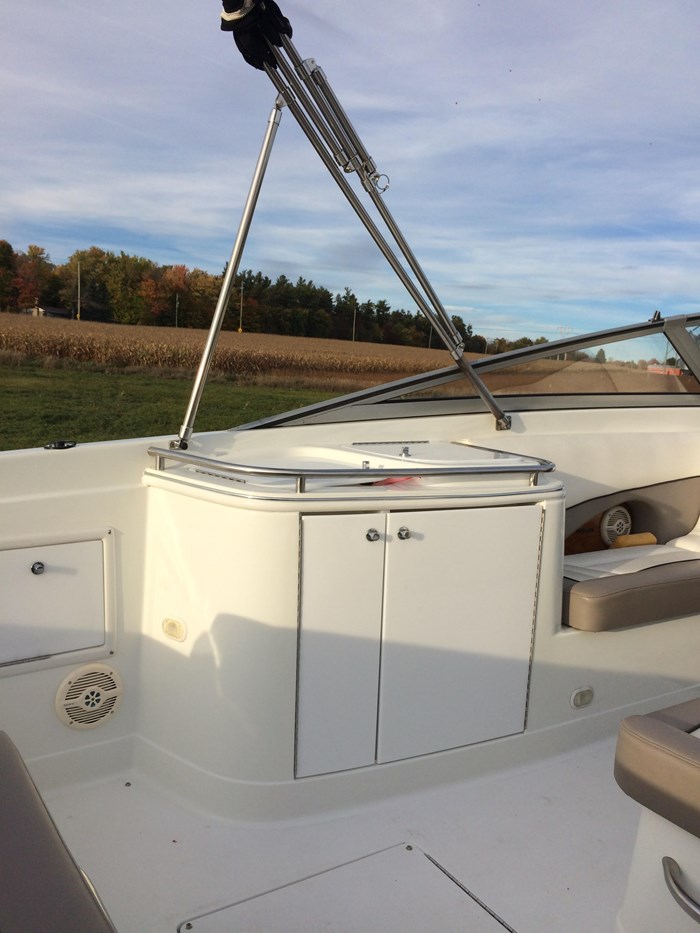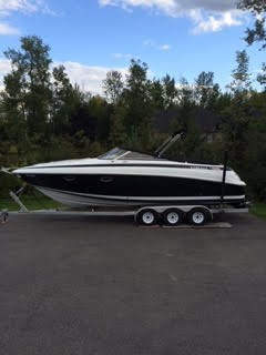 With all of its room and performance, the Cobalt 293 is the flagship of the Cobalt line. It's a study of comfort, performance, and possibilities. The lines of the 293 are graceful and clean, fully in keeping with the Cobalt tradition. Standard Equipment Dash - Instrumentation - Accessory power plug, 12 volt - Compass, traditional - Depth, and water - air temp. package - Hour meter - Leather - tilt steering wheel - Windshield wiper, starboard Stereo - AM-FM Cassette - Stereo remote, driver Exterior - Anchor locker - Air compressor - Bow scuff plate - Concealed boarding ladder - Deck hatch(es) with screen - Midship cleat - Motorbox actuator - Transom shower - Transom walk-through door Interior - Bow walk-through doors - Cockpit refreshment console - V-berth filler cushion - Double wide helm seat - Galley unit - Hanging locker - Ice chest - L-lounge seating - Head compartment w- Porta-Potti - Removable carpet. Bimini top - Bimini enclosure package - Cockpit tonneau - Mooring cover - sharkskin - Side curtains - Stern curtain - GPS Unit. Portable Generator included: Generac. TRAILER INCLUDED!